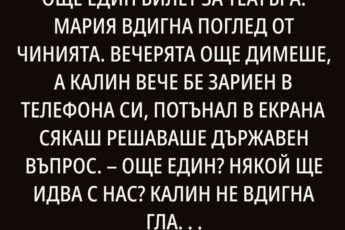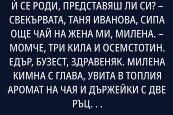 – Аз няма да гледам твоето дете! – извика тогава Ралица, и думите й се забиха в сърцето на Елисавета като нож. Отзвукът им се разнасяше не само в душата на майката, но и в очите на осемгодишната Дарина, която стоеше на прага и чуваше всичко.