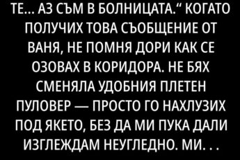 10 години се грижех за дядото на жена ми. Тогава живеехме аз, децата и дядото в един нает апартамент в София. Сестрата на жена ми, Гергана, обитаваше апартамента на самия дядо. Истината е, че никой не го искаше при себе си нито свекървата ми, нито внуците му. Моето житейско развитие не потръгна както исках не завърших университет, рано станах баща и не успях да направя обещаваща кариера.