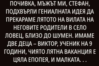 Štai pavyzdys – kraštutinė situacija, kuri visai neseniai nutiko mūsų šeimoje. Mūsų sūnus beveik visą vasarą būna su mano tėvais namelyje, o uošvė gali jį pasiimti savaitei ar dviem.