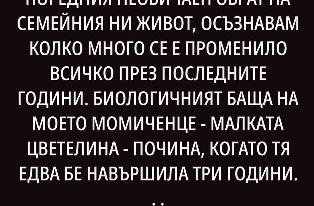 Биологичният баща на моето момиченце – малката Цветелина – почина, когато тя едва бе навършила три години. Дълги години бяхме само двете, нищо друго нямаше значение тя и аз срещу света.
