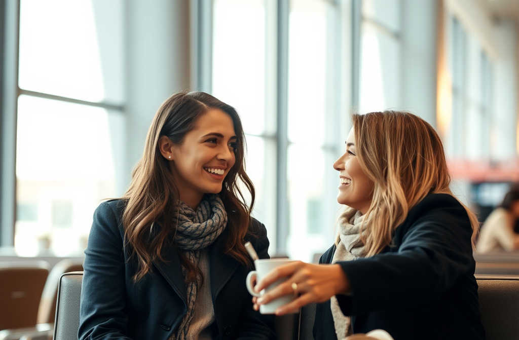 Служителката от салона, с топла усмивка и безупречна униформа, се приближи. Започваме предварително качване за вашия полет. Да ви долея ли?