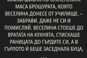 “Е, така и трябва. Все пак е рожденият ѝ ден,” отвърна той. “А аз си тъжих в своя. Дори не го празнувах. Разбира се, чай и торта с близките. Като в детската градина…”