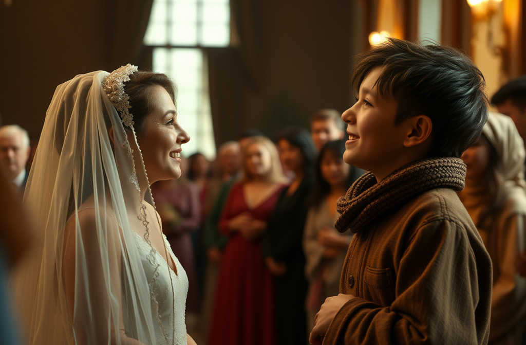 Съпругът ѝ се приближава бавно. Не казва нищо. Поглежда момчето скъсаните му дрехи, изпитите бузи, треперещите пръсти. Прави прост жест слага своя сако на раменете му.