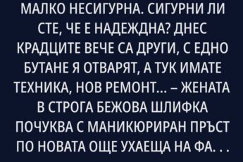Къде пак отиваш? попита Яна, вдигайки очи от телефона. Димитър щипкаше дръжката на качулата си пред вратата