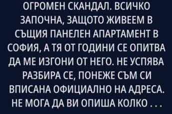 Майка ми и аз наскоро имахме огромен скандал. Всичко започна, защото живеем в същия панелен апартамент