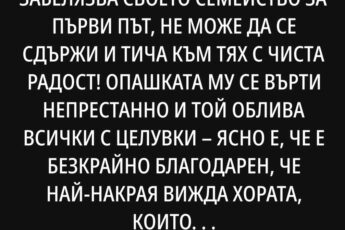 Спомням си как кучето Бончо за пръв път видя семейството си след дълга раздяла. Сякаш времето бе спряло