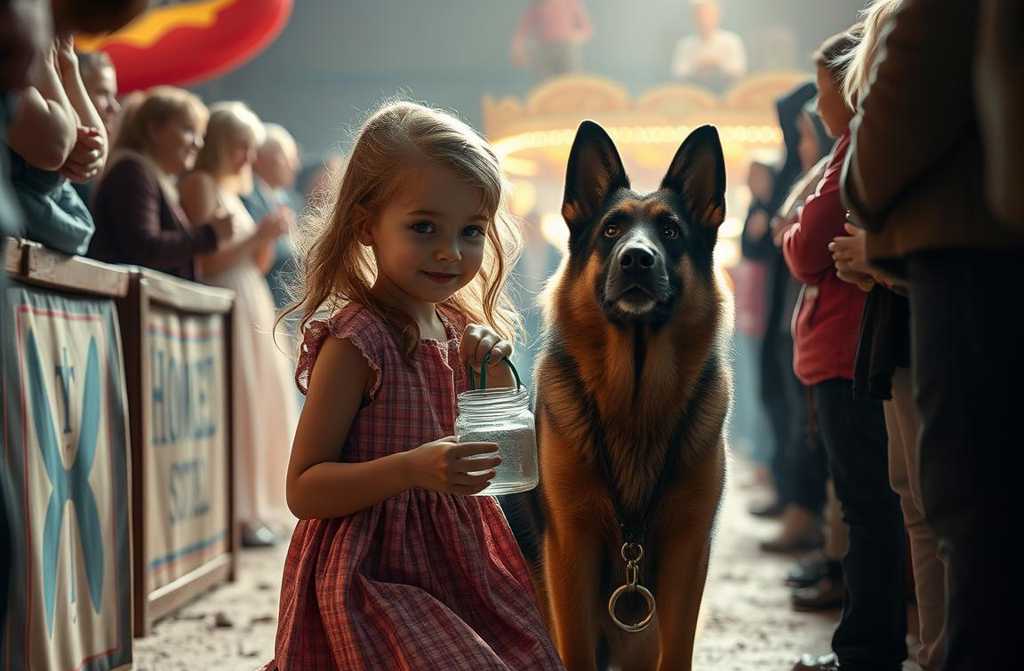 A man in a rumpled blue suit called out in an overly cheerful voice, “Today, youve got a chance to own a piece of Willow Creek history! Our very own Max, who served five years on the force before Officer Parker left us. Now hes looking for a new home. Lets show him some love, eh?” Lily gripped her jar tight enough for the glass to bite her palm. Rachel rested a hand on her shoulder, but Lily shrugged off the touch. She scanned the crowdcurious onlookers, maybe locals who remembered her mum, or just people here for the spectacle. But in the front row, she spotted two men who didnt fit. One was tall, silver-haired, in a white shirt with a wolfish smile: Vince Harding, owner of Harding Security, a name Lily had seen on billboards with slogans like “Safety You Can Trust.” The other was rougher, his denim shirt smudged, face weathered: Gerald “Jerry” Bennett, a farmer from across the valley. They watched Max with a hunger that made Lilys stomach twist.