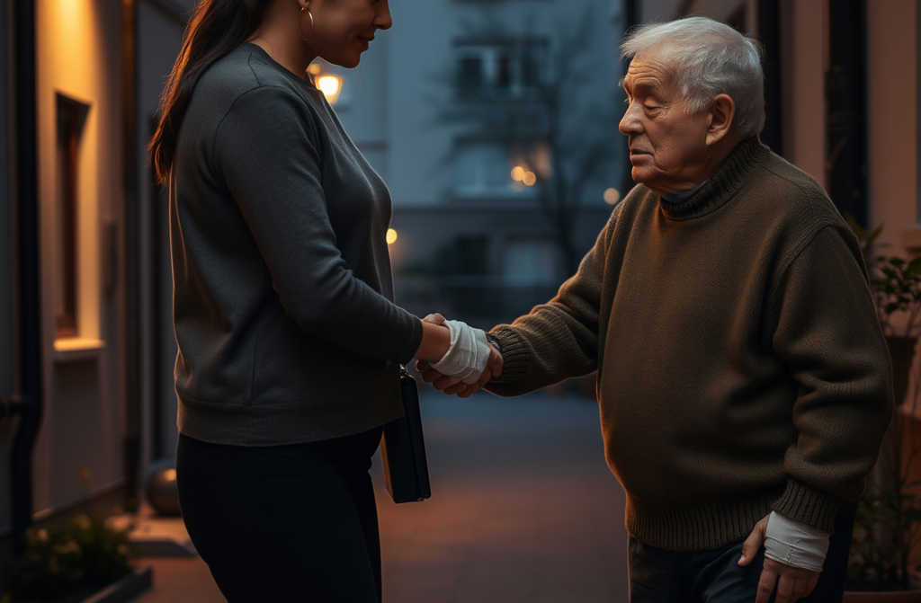 Позвъних и след секунди чух притеснен женски глас от домофона. Дядото пак промърмори нещо, явно я разпознаха. След броени мигове при нас изскочиха жена и мъж. Първо се втурнаха към дядото, преглеждайки го от главата до петите, после мъжът ми благодари сърдечно и занесе дядото вътре. Жената на няколко пъти настояваше да ѝ кажа как могат да ми се отплатят. Отказах любезно, но тя ме помоли да почакам. След минута се върна с огромна кошница малини. Свои са, от село!, похвали се тя. Благодарих, но отказах да взема. Вземи ги, вземи! настоя тя, полудяхме, като видяхме, че го няма, откакто се върнахме от вилата!