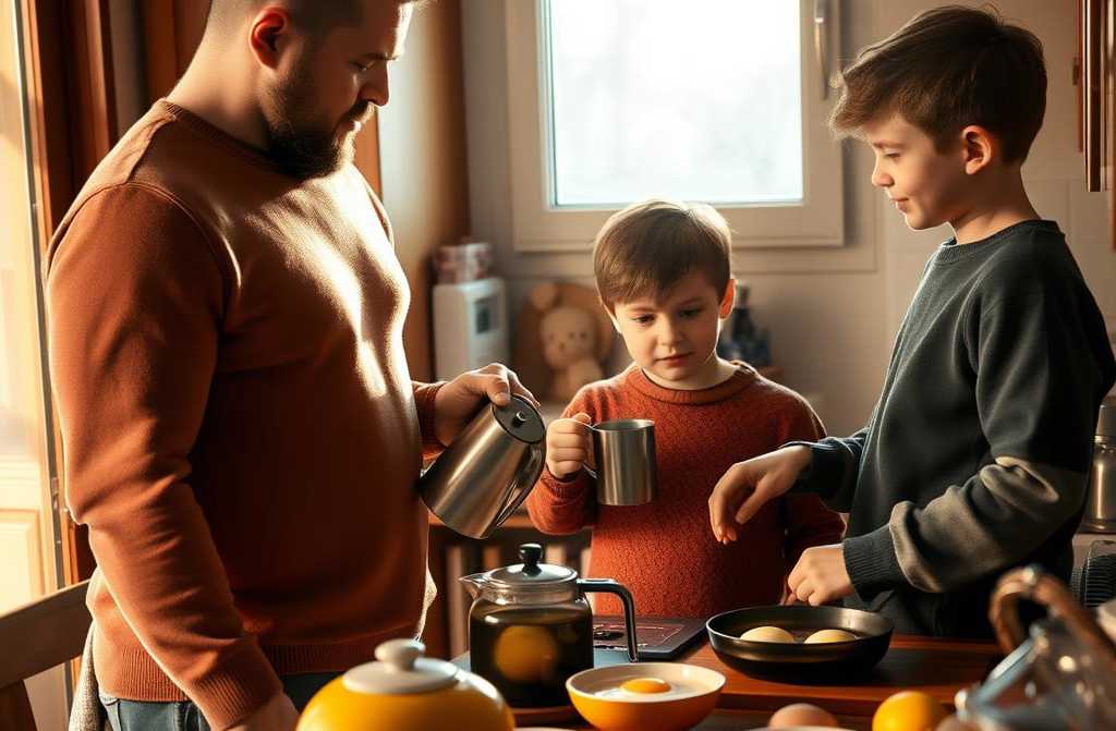 Отоплението цяла нощ беше на коляно, затова реши да не рискува със сутрешен бягане и не ги събуди по-рано. Залюбва се в вече здравите тела на своите момчета.