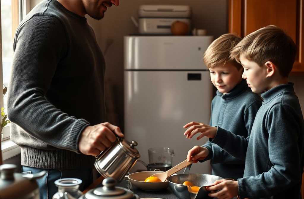 Отоплението цяла нощ беше нестабилно, затова реши да не рискува с утренния бягане и да не ги събужда по-рано. Залюбва се във вече закрепилите фигури на своите момчета.