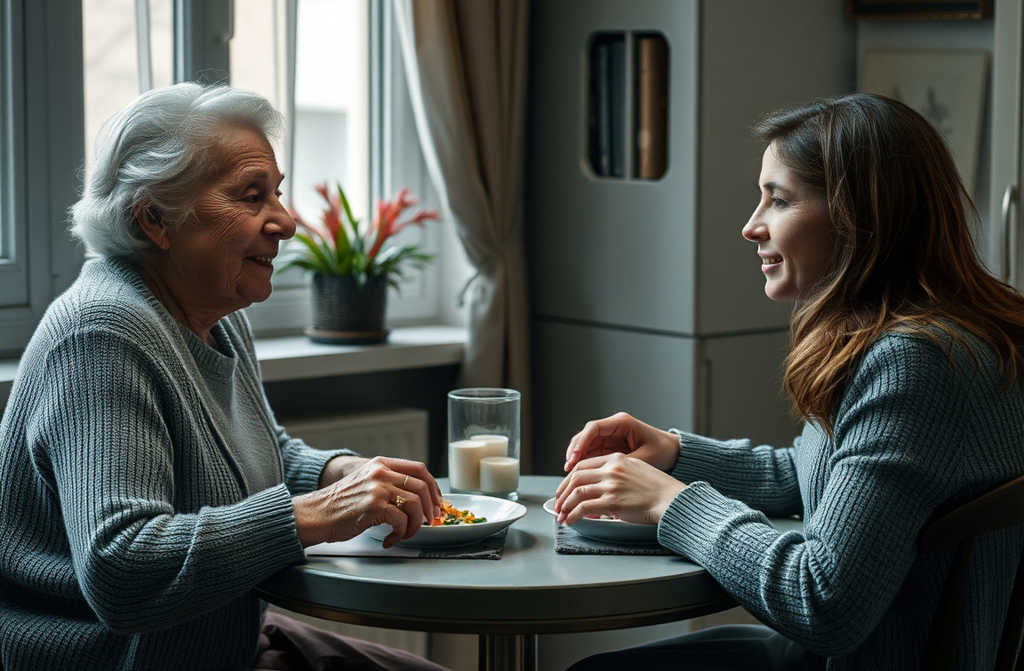 Седнахме на маса, пет кюфтета в чинията. Чаках онази празнична топлина, която помня от нашия дом, но стаята беше студена. По време на вечерята Йовка още със салфетка в ръка попита: Майко, колко време ще останеш? Аз имам доста задачи тая седмица.