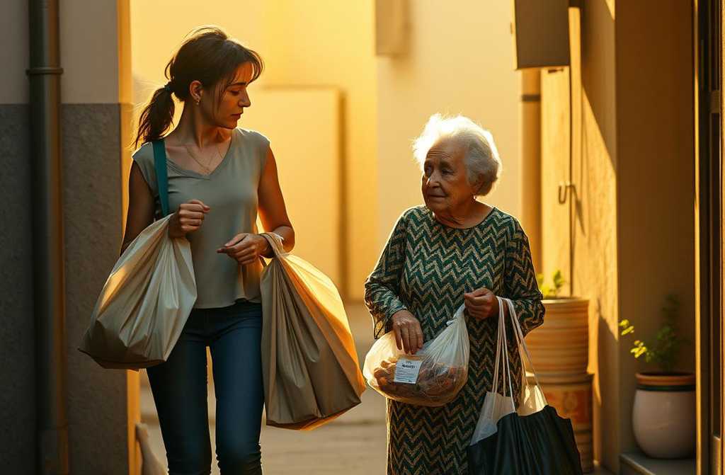 В кухнята на съседката остави всичко, казвайки, че е за нея. Виждайки сардини, патьо, консервирани праскови и други деликатеси, които обичаше, но не можеше да си купува, баба Пенка се развълнува толкова, че Катя се почувства виновна, че не я глези по-често. Сбогуваха се с целувка, и Катя се качи у дома си.