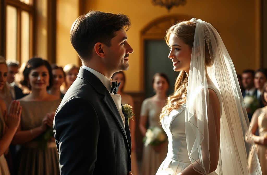 Младоженецът, красив и спокоен, пристъпи напред.