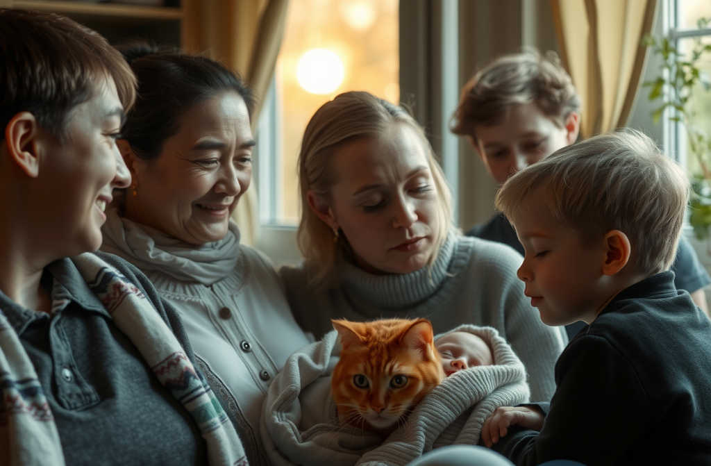 Някъде дрънва лъжичка, ехва смехът на Елица и тишината тихо се измъква от перваза, помилва котарака по ухото. Котаракът мърка, измива се и се готви за среща с новия член на семейството.