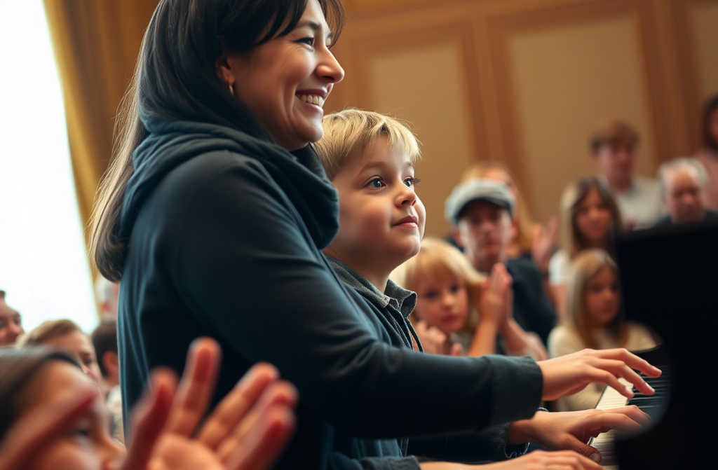 Нейният син свири Бетовен. Нейният осемгодишен син, който сам пожела да ходи на музикално училище, сам учеше часове, сам избра тази пиеса за концерта.