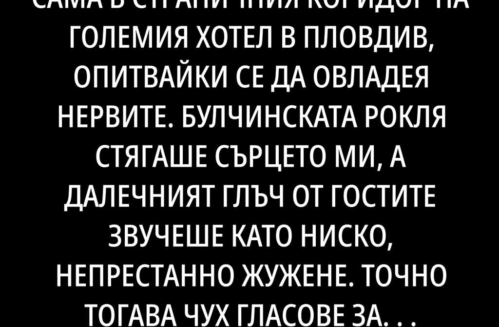 А тя заслужава ли да я използват? обади се глас отзад. Това беше леля ми Калинка, още с един поглед схванала истината. Десетки гости кимнаха. Николай пак се опита да приближи, но се отдръпнах.