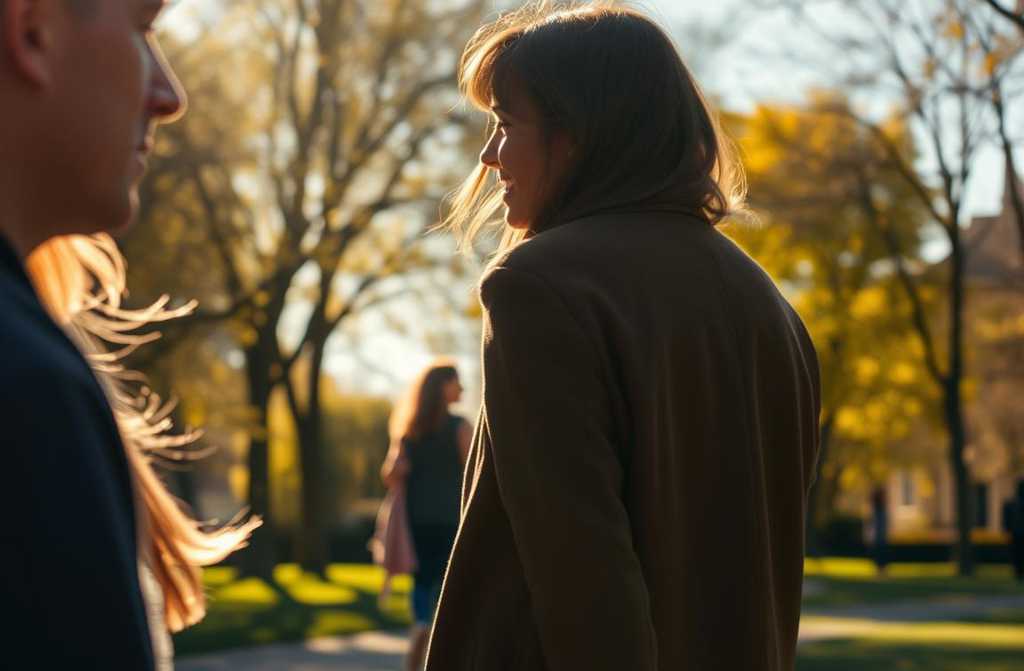 Районът беше непознат и пуст. Влязоха в парк, седнаха на пейка и започнаха да говорят. Галина ги наблюдаваше отдалеч. Разговорът изглеждаше сериозен, но после последва дълга целувка.
