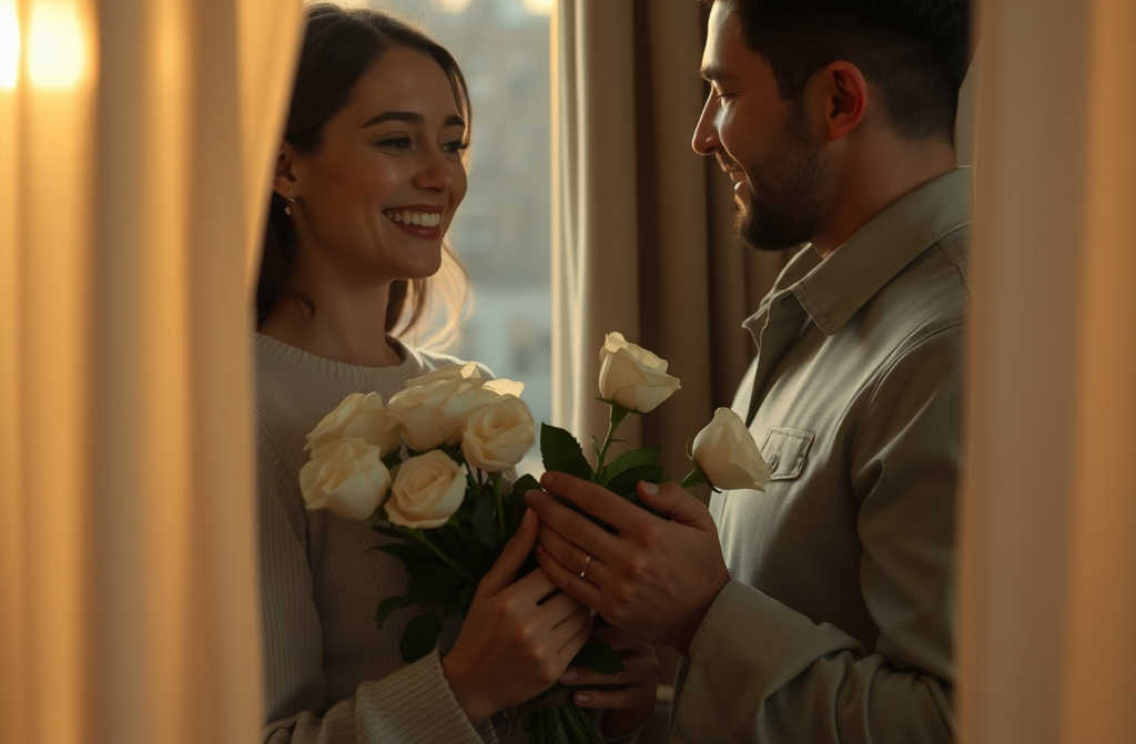 Отворих и го видях с букет бели рози, точно като тези преди четири години.