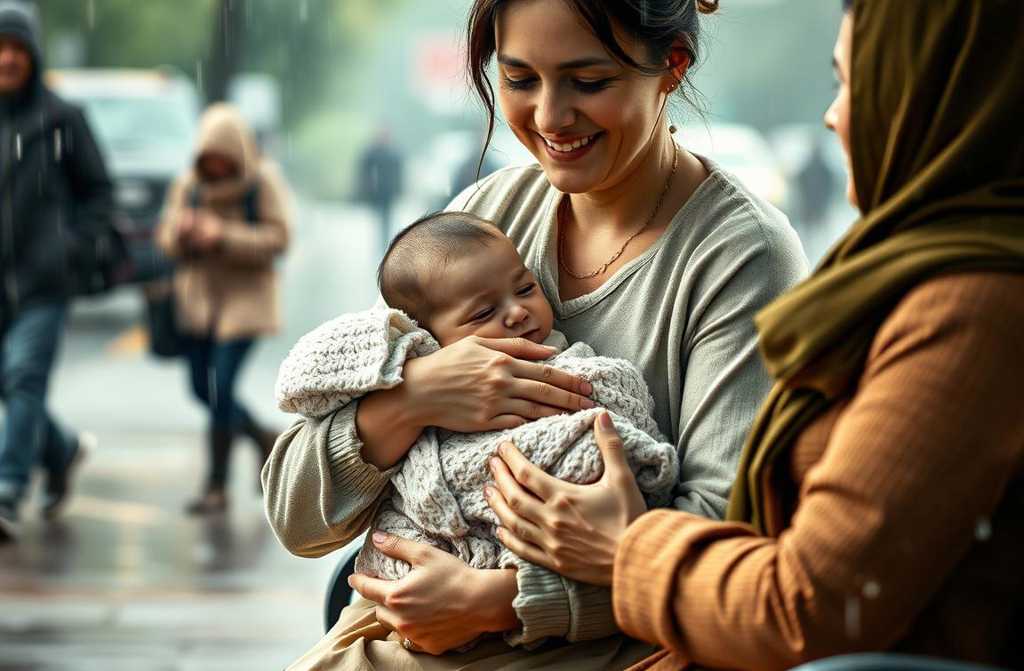 Баба Мария Петрова, на шестдесет години, усещаше, че е време за заслужена пенсия, но не се бързаеше. Този ден приключи смяната си в родилното отделение в Софийската болница Св. Димитър, облече се и се спря под тежките дъждове, без чадър. Постави качулата си и се отправи към автобусната спирка, когато изведнъж чу плач. На една пейка, под наваления чадър, лежеше няколко дни старо бебе.