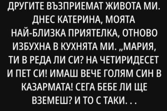 Но най-гневна бях, когато домоуправителят, бай Илия, дойде при мен и със служебния си тон каза: