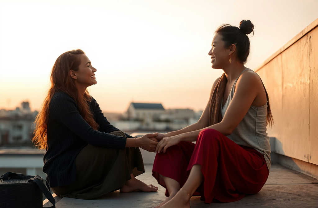 Вечерта след медитация, залезът беше тежък, влажн, като разтопено слънце на хоризонта. Джая предложи да седнем в тишина на покрива на ашрама. Всички се оттеглиха, а аз се съгласих. Гледайки залеза, в мене се смесваха тъга и самота.