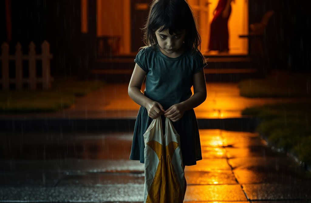 Отвисна нейният остър глас през бурята: Изчезвай! Не мога да храня обезпокояващ се паршивец.. Светкавица разкъса мрака и изобрази слабата ми фигура, скачаща по хлъзгавото тротоарче. Нямаше нищо нито покрив, нито майка, нито дори надежда, освен че Бог, поне в сърцето ми, все още гледа. На крака ми се сляха кръв и дъжд, а под крака се разпадна огледало, отразяващо късмета, който се изгуби. В дрехата, изрисувана с златна нишка, шепнах тихо: Мамо, ще блеснат ли отново тези цепнатини?.