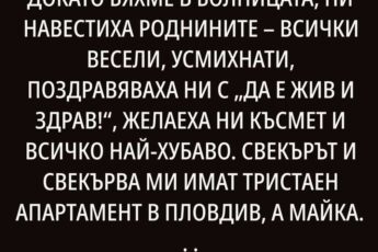 Dabar mes jau suaugę, turime savo šeimas, bet mama Marija tebėra man ir mano broliui artimiausias žmogus. Du kartus buvusi uošvė, ji nė karto nesutarė su savo dukrytėmis ir nė karto iš jų neišgirdo žodžio “uošvė”. Ir mano žmona, ir brolio žmona ją vadina Motina Marija dėl jos gerumo ir supratingumo. Ir kiekvieną kartą, kai girdžiu ją vadinant, Marijos akyse matyti nuoširdus džiaugsmas