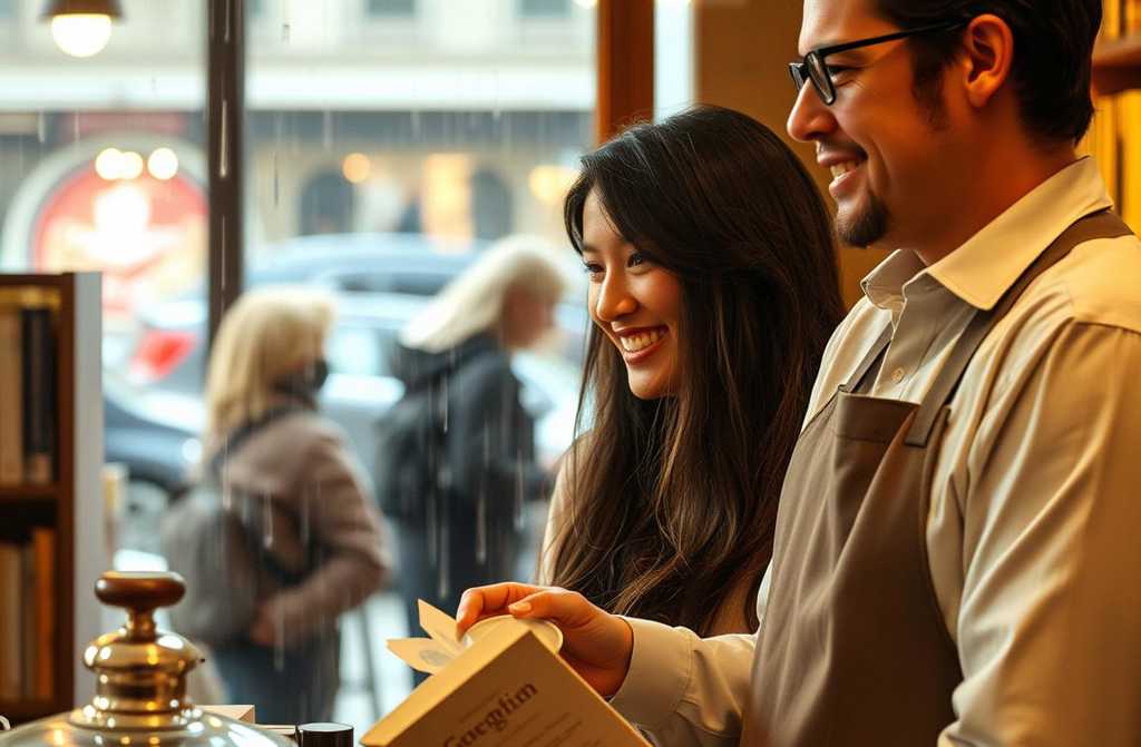 Докато прелистваше страниците, шумът на дъжда и ароматът на кафето от другите маси се сливаха в уютна атмосфера.