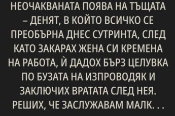 Но Бойчо вече не я слушаше. Отмахна се от извиненията ѝ, като от досадна мушица. Цялото му внимание беше приковано към вратата, откъдето се чу звънкият реб