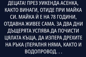 Атанас ми каза, че е много добър чистач и отлична готвачка.