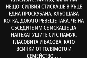 Онази нощ Любен купи мляко и пелени, докато аз заех бебешко легло от сестра си. Ралица не се отдели от тях нито за секунда, шепнейки: Това вече е вашият дом. Аз съм ви голямата сестра. Ще ви науча на всичко.