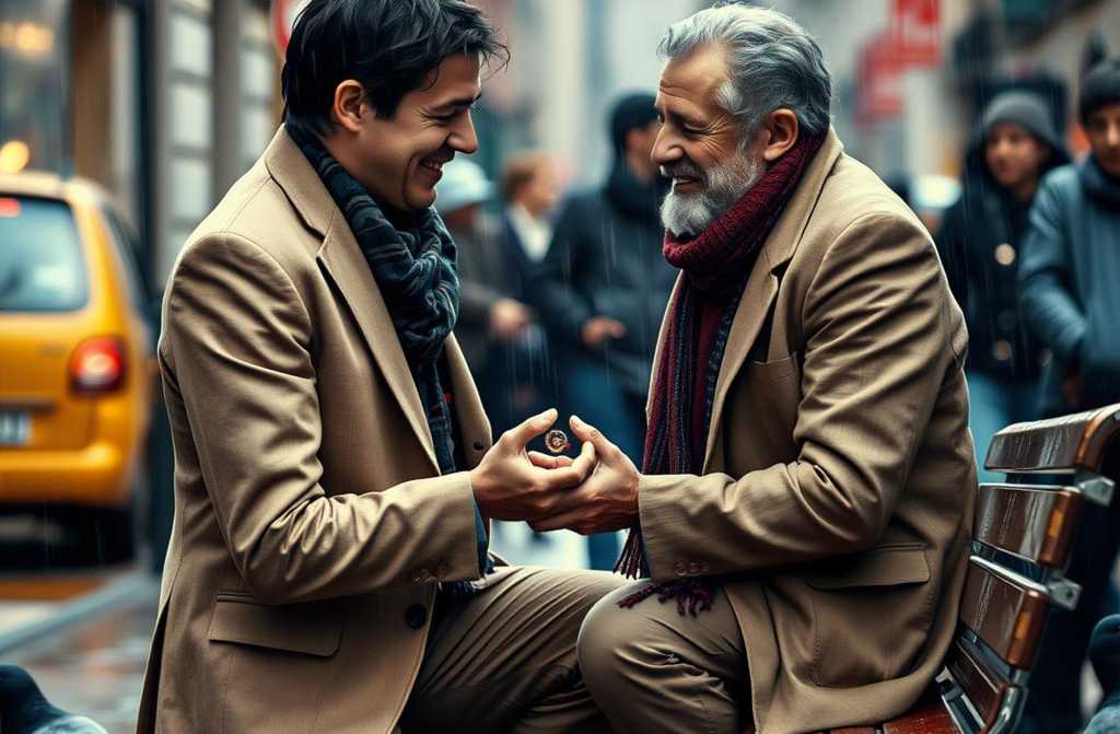 Елена не му обърна внимание докато не го видя със собствените си очи. Бездомният, може би на четиридесет, с топли очи под слоевете брада и мръсотия, подреждаше трохи по парапета, говорейки нежно на всеки гълъб, сякаш му е приятел. Любен стоеше до него, гледайки го със спокойствие, каквото майка му не беше виждала от месеци насам.