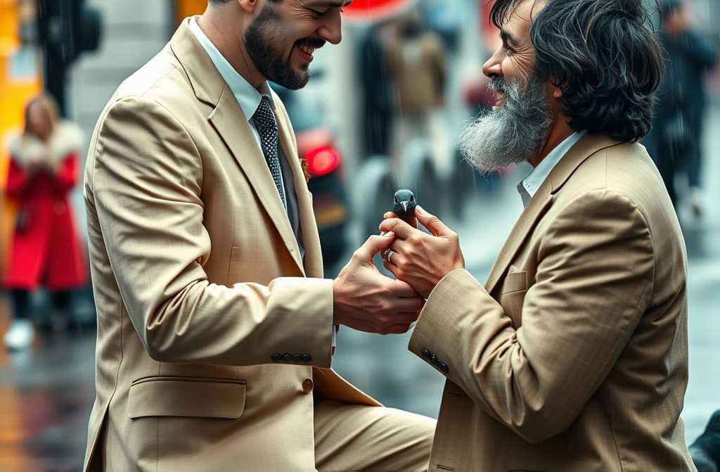 Елена не му обърна внимание докато не го видя със собствените си очи. Бездомният, може би на около четиридесет, с топли очи под слоевете мръсотия, подреждаше трохи по парапета, говорейки нежно на всеки гълъб като на приятел. Мартин стояше до него, гледаше го със спокойствие, което майка му не беше виждала от месеци.