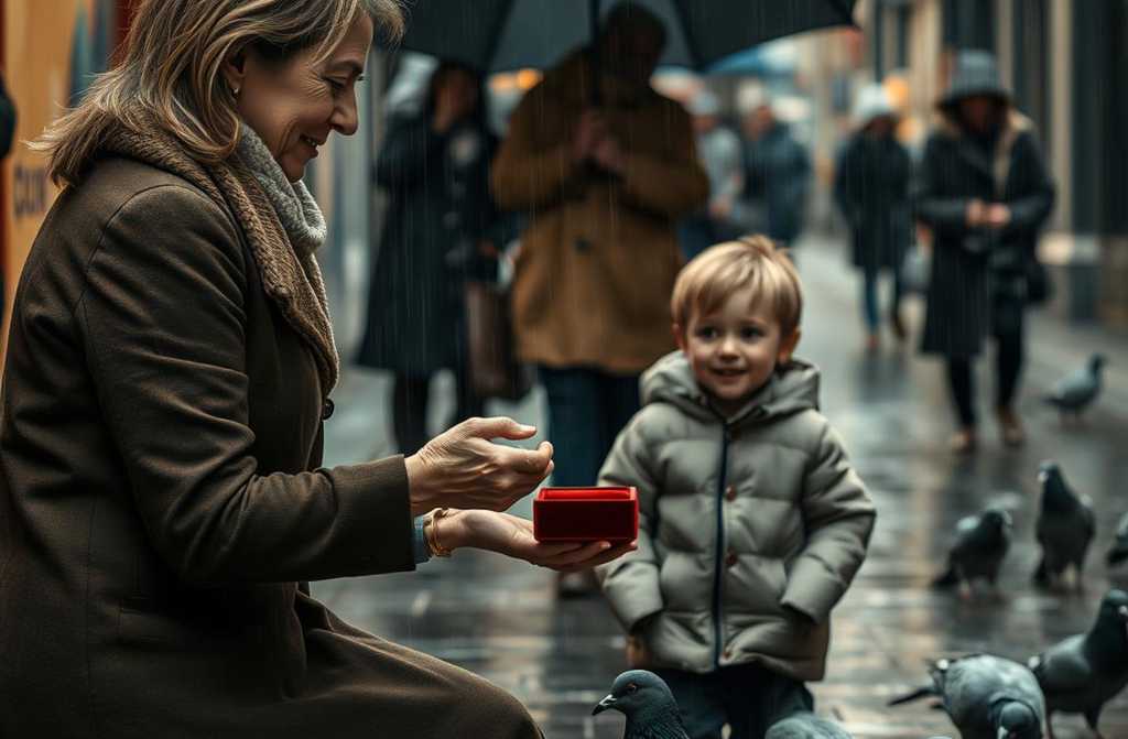 Небето леко сипеше дъжд, като някаква нежна покривка, докато хората минаваха с отворени чадъри и свели очи. Но никой не обърна внимание на жената в бежов костюм, която клекна на коляно посред кръстовището. Гласът ѝ трепереше. Моля те омъжи се за мен, прошепна тя, държейки кадифена кутийка в ръце. Мъжът, на когото правеше предложение? Седмици наред не беше си бръснал брадата, носеше палто, закърпено с тиксо, и спеше в алея само на един квартал от улица Графа Игнатиев.