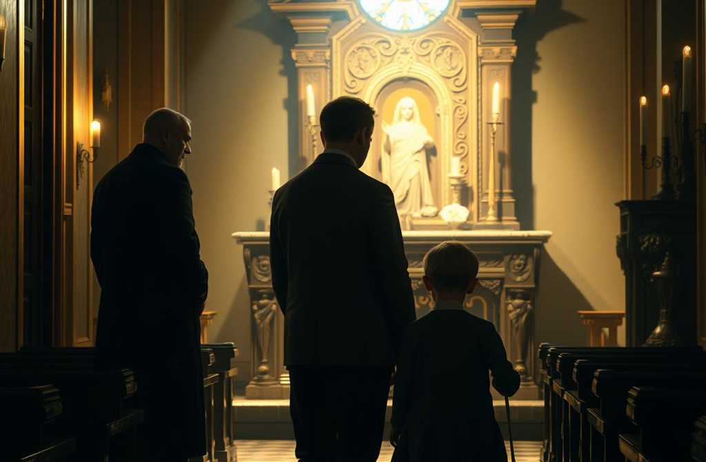 В църквата лежеше мълчание, тежко като камък. Въздухът бе пропитан с тамян, сълзи и онова неописумо мъчение. Хората седеха със сведени глави, всеки в своята скръб. Времето като че ли спря.