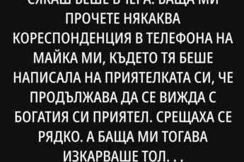 Два пъти вече опитах да подскажа на децата, че ми е трудно да връзвам двата края. Ако поемеха разходите по сметките за парно, ток и вода, нямаше да се чудя откъде да намеря пари до следващата пенсия. Дъщеря ми, Радосвета, се направи, че не ме е разбрала, а снахата на сина ми, Десислава, която държи парите у тях, изобщо не реагира на думите ми сякаш са увиснали във въздуха.
