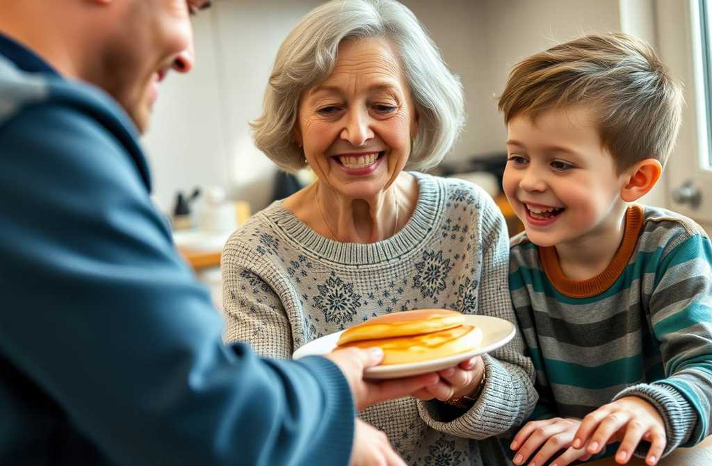 Те нахапаха блините, намазани със сметана, а Валентина им разказваше за есенната гора и за гъбите, които събираше с дядо им. Денис слушаше с отворена уста, Артем задаваше въпроси. След закуската внуците избягаха към анимациите, а бабата се захвана с миенето на съдовете.