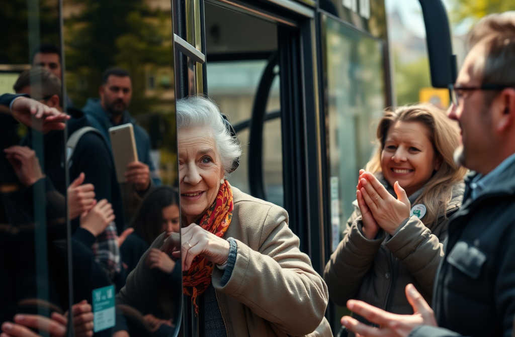 Помогнах й да влезе. Вътре целият автобус избухна в ръкопляскане.