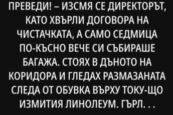 Докато се случваше всичко, майка ѝ я изпрати при баба, а след това влезе в Костадин с куфарите и обяви развод.
