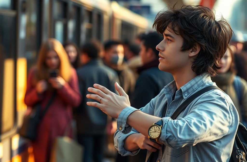Точно пред носа й се появи млад младеж, хванал се за перилото, ръкавът му се вдигна, разкривайки кръгли ръчни часовници с множество стрелки и две циферблата.