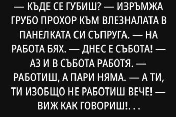 Той е напълно луд! възмути се Бояна, теглейки вещи от куфар. Той каза, че нощем няма да се завърне. Твърди, че е намерил работа като охранител. Дявол, къде е отишъл?