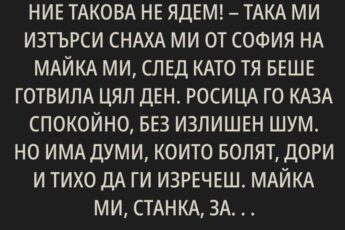-Сядай, хапни поне! Нали твоята не сготви нищо. Ще умреш от глад.