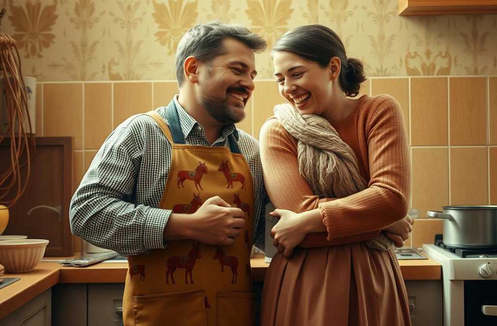 Под жълтата светлина на лампата, в ъгъла до най-малкия шкаф, седеше спокойно плешив мъж на около четиридесет. Скромно, но умело нарязваше копър с широкия нож на Дарина.