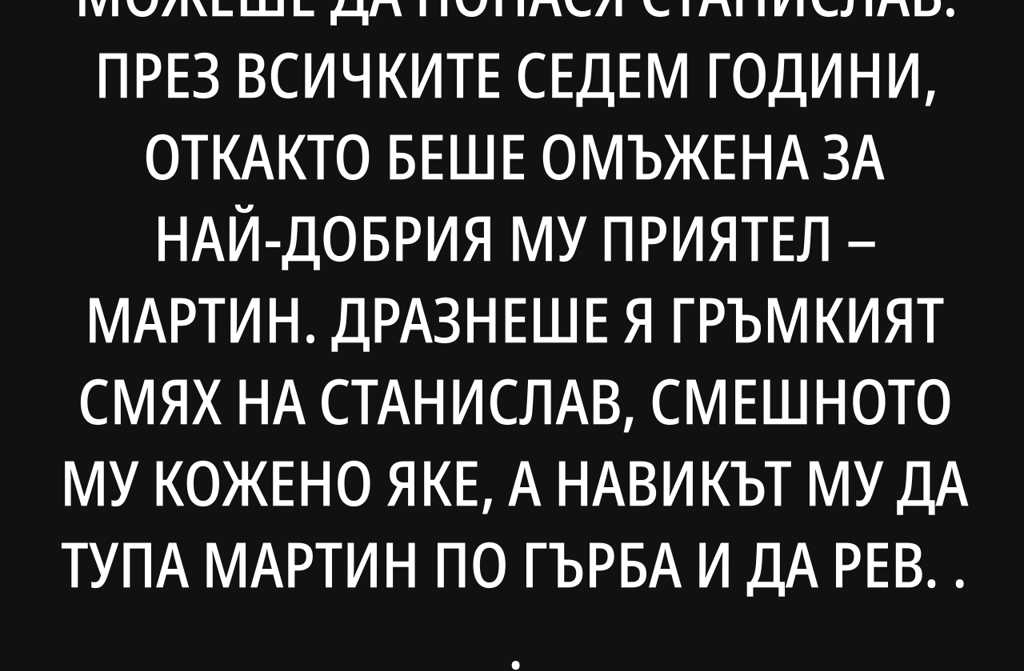 Милена не можеше да понася Станислав. През всичките седем години, откакто беше омъжена за най-добрия му приятел Мартин.