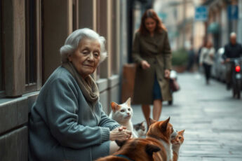Аз съм на 43, а майка ми е на 67 години. Живеем в един и същи град, но в различни квартали. Както и много други възрастни хора, и на нея ѝ трябва постоянна грижа, но не иска да се премести при мен само по една причина — в апартамента ѝ живеят четири котки и три кучета. Храни и всички бездомни животни в махалата. Харчи всяка стотинка, която ѝ давам, за лекарства и храна за животните.