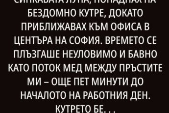 Работя като готвачка в малко, уютно кафене в центъра на Пловдив. В края на поредната натоварена смяна