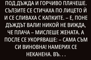 Румен иска да ме отрови, мамо, шепне тя, гласът ѝ се къса, сълзи ѝ текат чух го миналата нощ по телефона, говореше за отрова в моя чай.