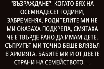 Исках да възразя, но умората бе толкова силна, че нямах сили за спор. Пътя, раждането, два бебета кимнах, дадох Мишко на свекърва си и излязох в спалнята, убеждавайки се, че е временно, че малко помощ няма да промени нищо.