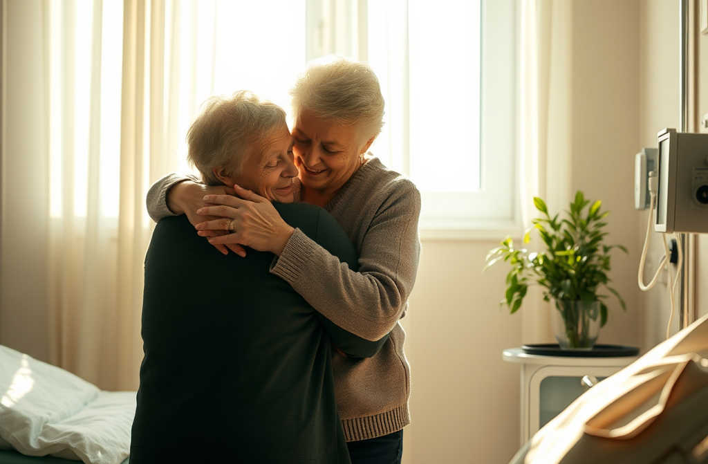 Синът, усещайки срам за поведението си, бяга в болницата при майка си, плаче, пада на колена, целува ръцете й и моли за прошка. Майка му, разбира се, му простява той е нейният син.