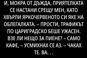 Per vakarinę arbatą man kilo mintis, kad jai reikia naujų įspūdžių. O kur geriau jų įgyti nei kelionėje? Žinoma, negaliu sau leisti kelionės aplink pasaulį, bet į populiariąją Antaliją tikriausiai ištrūksiu! Nuspręsta, rytoj išplėšiu iš viršininko atostogas ir – pirmyn! Laimei, mano mokyklos draugė įsidarbino kelionių agentūroje ir ilgą laiką siūlė bilietą su gera nuolaida.
